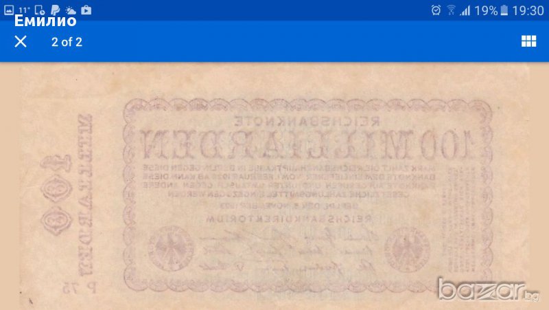 WW2 GERMANY 100 MILLIARDEN MARK 1923 REICHSBANKNOTE, снимка 1 - Нумизматика и бонистика - 17933363 WW2 GERMANY 100 MILLIARDEN MARK 1923 REICHSBANKNOTE, снимка 2 - Нумизматика и бонистика - 17933363 1/2