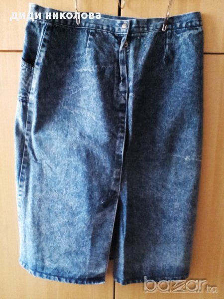 Дънкова пола с 2 джоба отпред.Дълж.-70см.Об.талия-96см.Малко използвана.