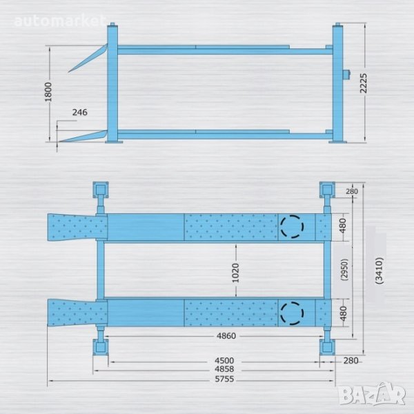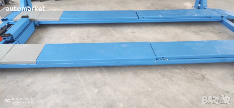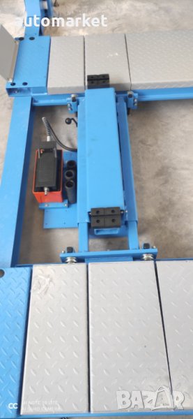 Модел специално предназначен за 3D геометрия. Задвижване с трифазен двигател, хидравлична помпа, цилиндър и усилени въжета. Самосмазващи се ролки и полиетиленови плъзгачи. Регулируемо разстояние между платформите. Самозаключваща се система за обезопасяване. Автоматично заключване и освобождаване на рамената. Подемникът е с хидравлична и механична защита. Подемникът е снабден с клапан за аварийно спускане при прекъсване на електро захранването. Снабден с СЕ контролна кутия работеща на 24V, безопасна за здравето на потребителя, съгласно изискванията на ЕС и Технически надзор. Технически характеристики: Капацитет: 5.5т. Минимална височина на повдигане: 246 mm. Вторична височина на повдигане: 375 mm. Максимална височина на повдигане: 1 800 mm. Габаритна дължина: 5755 mm. Дължина на платформите: 4858 mm. Габаритна широчина: 3410 mm. Габаритна височина: 2225 mm. Широчина на платформите: 480 mm. Работно напрежение 380 V. Работна мощност 2, 2 kW. -електро хидравличен -четворно заключваща система -подходящ за работа със стенд преден/заден мост. Гарантирано най-добрата цена в страната. Осигурен гаранционен и извънгаранционен сервиз, резервни части на склад. Оборудването се поддържа на склад. Гаранция 24 месеца. Сервиз до 24 часа. Монтаж до 24 часа. Опция за Лизинг.
