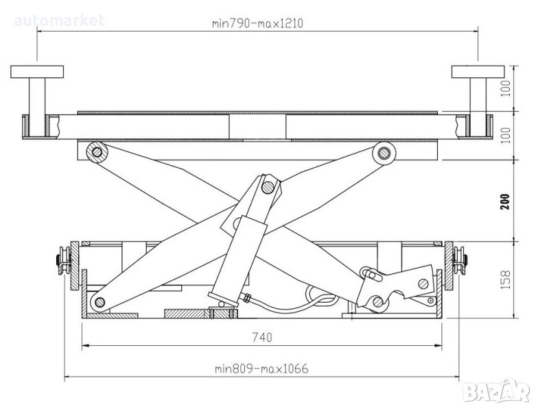 • Ширина на траверсата за повдигане (регулируема): 790мм-1210мм