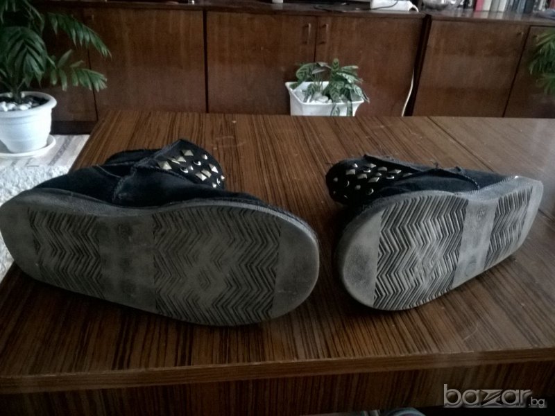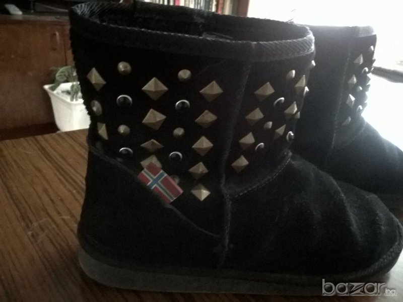 Купувани от Англия. Носени един сезон, мн.запазени, без забележка. Черен естествен велур. Мн.удобни за сухо време. Декорирани с капси и британското знаменце (гумено) отстрани.