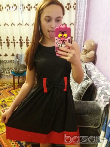симпатична дамска рокля черно червена с панделка → Обява 17988056