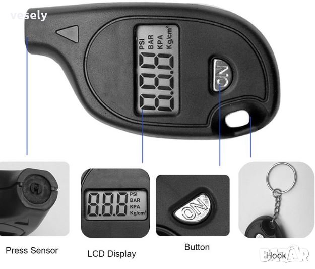 манометър за гуми - 22 лвДигитален манометър с цифров LCD дисплей с помощта на койтоще следите налягането на гумите, като по този начин удължава живота им, увеличава се горивната ефективност и осигурява безопасно шофиране. Подходящ за измерване на налягането на въздуха в гумите на автомобили, мотоциклети и др Модел номер: TH805. Обхват на изпитване: 2.0-99.5 PSI OR 0.15-7.00 BAR. Точност: +/-1.5PSI. Резолюция: 0.5PSI.Единици: PSI, BAR, KPA, KG / CM2 Захранване: 3 батерии LR44 .Размер на уреда: .143 * 45 * 23 мм Захранване на измервателния уред, показва се последният резултат от теста. Натиснете бутона 'ON' за преобразуване на единици (PSI - BAR - KPA - Kg/cm2).Едновременният тест на трансформацията на единица показва, че стойността се е променила съответно.. Дюзите на манометъра са подравнени с клапана и плътно налягане, че дюзата и клапанът са в добро докосване и няма съскащ звук. След 3 секунди извадете манометъра от клапана и точното налягане в гумите се отчита, а данните се задържат за 15 секунди. След като данните са нула, преместете манометър, за да продължите да тествате другите гуми.3. Ако уредът не работи в продължение на 60 секунди, той ще се изключи автоматично. Или натиснете клавишаза 3 секунди, за да изключите. 2. Мини електронен манометър за гуми - 14 лвКлючодържател- електронен манометър с LCD дисплей – идеален за наблюдение и проверка на налягането в гумите на автомобили, мотоциклети и др. Налягане в диапазон:3-100psi с точност: +/-1PSI. Три броя мерни единици : PSI, KPA, BAR. Размери: 6.1*3.2*1.5см. Тегло: 0.04kg. Автоматично изключване след 10 сек. Батерия CR2025. Цвят черен 3. Gravity Sucker смартофон държател за кола - 20 лвНов високотехнологичен GSM държател на автомобила на бранда SYRINX. Мобилната стойка с помоща на вендузенмеханизъм чрез гравитационно засмукване сигурно се закрепна на предното стъкло или на таблото за управление. С технологичното си рамо STYKI може да смартфона в три равнини – на 180 градуса хоризонтално и 120 градуса вератикално.Смартфона се закрепва надеждно в заключваш механизъм със противоплъзгаща силиконова подложка. Цялата конструкция позволява да управлявате местоположението на GSM само с една ръка.