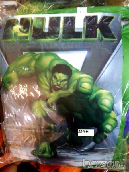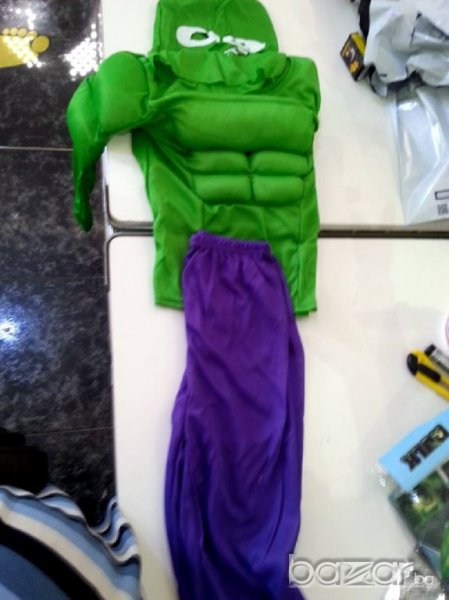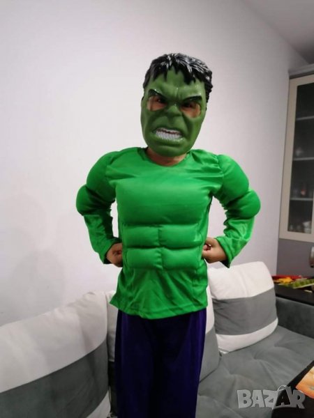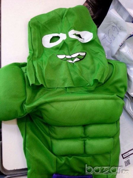Карнавален костюм на Хълк,с мускули за деца от 7-8-10 г. Л размер.Изработен от полиестерна коприна.Вече само с твърда маска.Маската се поръчва отделно и е 4 лв.Костюма става общо 26,80лв.Китайски