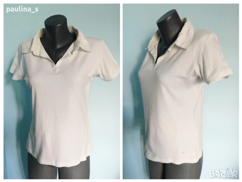2️⃣. Колаж / L / 2XL "Street one" Felix. Памучна тениска тип риза, с яка. Цената е крайна 19,99лв. Брандова памучна тениска, тип риза с къс ръкав и гарнирана яка. Материята е 100% органичен памук, хипоалергична с еластичност и покрива няколко размера. Моделът е спортно елегантен, леко втален. Без дефекти, като нова. Само ефекти.