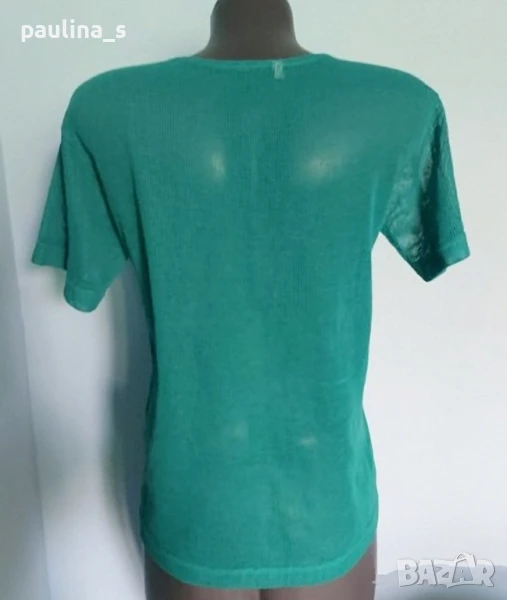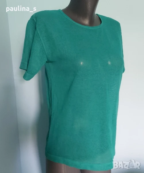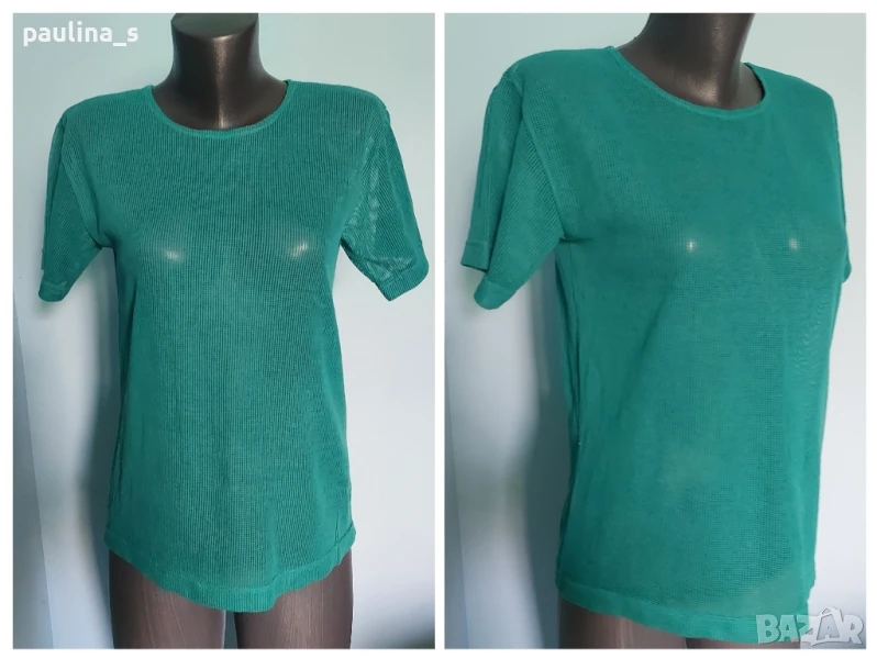 3️⃣. Колаж / L / 2XL. Цената е крайна 9,99лв. Блуза тип тениска, в зелено мрежесто трико от памук - България. Трикото дава елестичност и покрива няколко размера, посочени са. Без дефекти и етикет.