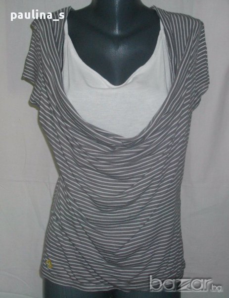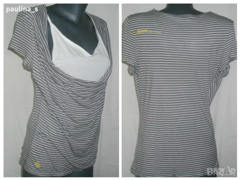 1️⃣. Колаж / L / 2XL - "Garcia". Цената е крайна 14,99лв. Брандова блуза с вграден потник. Деколтето пада свободно на дипли и дискретно загатва потника. Материя памучно трико с еластичност, бродирано лого. Блузата е спортна. Хипоалергична, подходяща за капризни към синтетиката кожи. Без дефекти, не е нова.