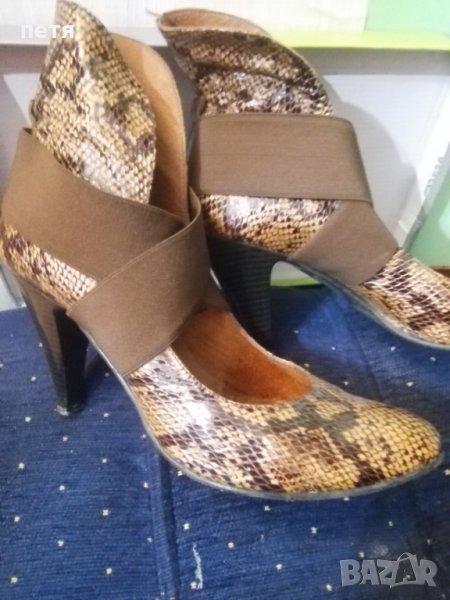 изключително красиви, високи обувки тип бота, с ластици за пристягане на крака, ток 10 см. , стелка 25 см., никакви забележки, оригиналните капачки