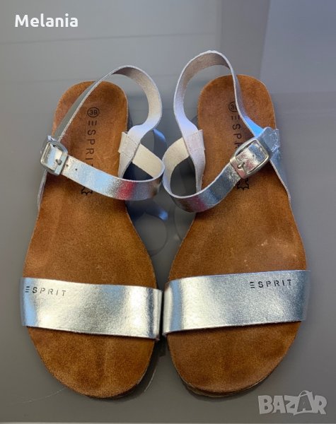 2. Сребърни сандали Esprit - много модерни, красиви и удобни. С каишки. Естествена кожа отгоре и на стелката. Номер 39. Размер на стелката - 25 см. Чисто нови, с кутия. Цена - 50 лв