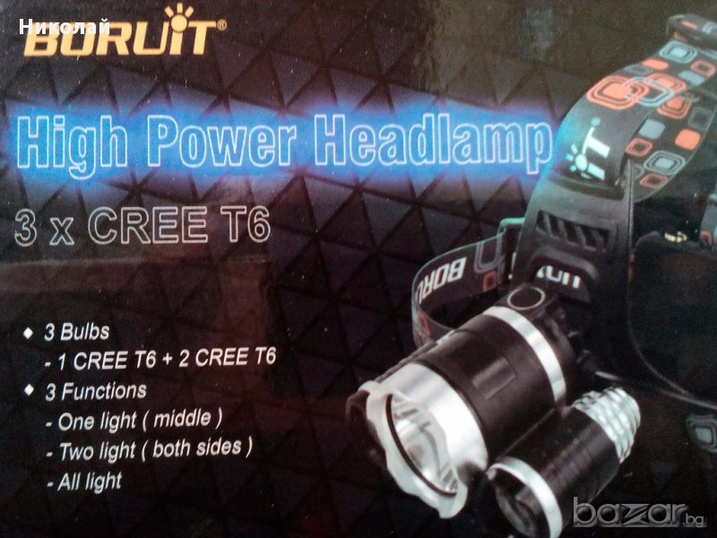 Челник фенер 3xCREE T6 led с 2 батерии 8800 mah → Обява 18050184