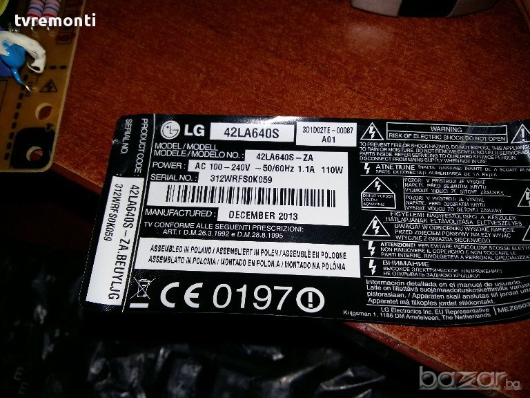 EAX64908001 (1.9) EAY62831201 LG 42LA640V POWER SUPPLY Старателно тествана от нашия техник и обновен нашия техник