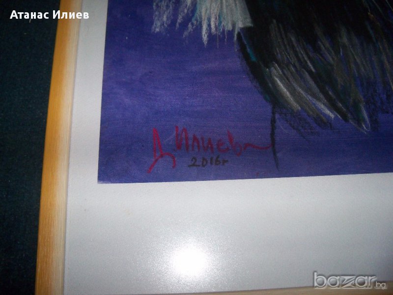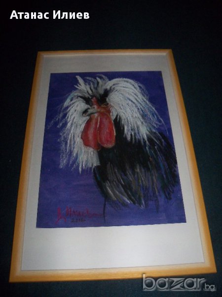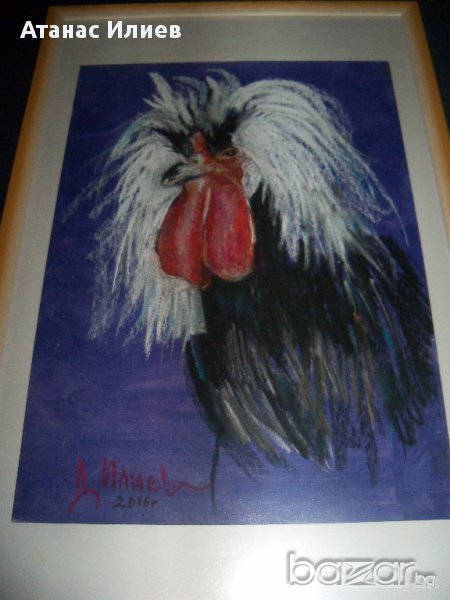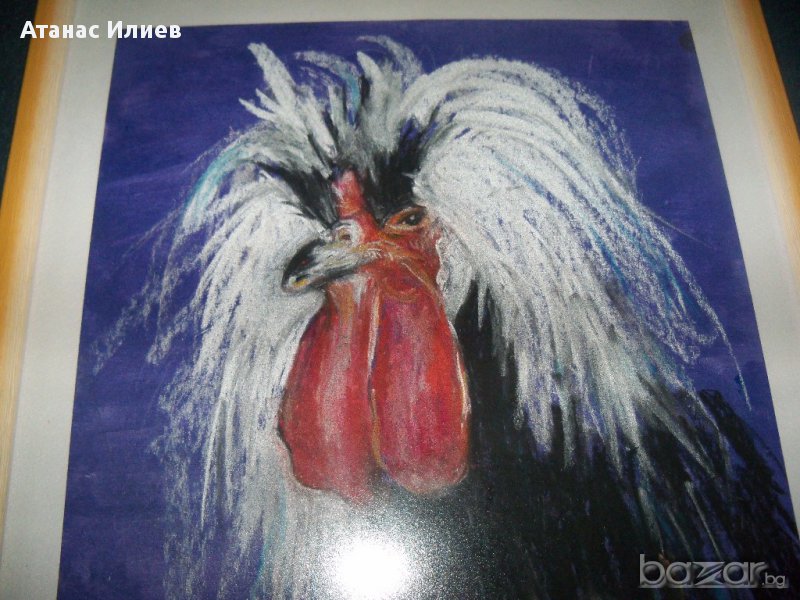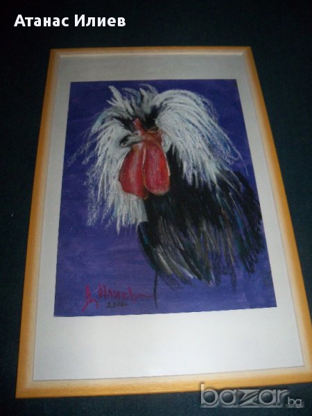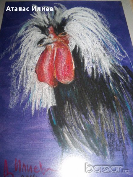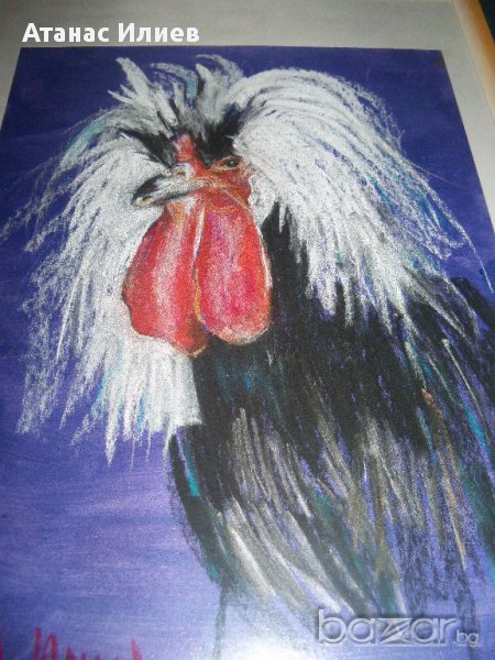 "Рошавият петел" страхотна картина от художничката Десислава Илиева. Техника - сух пастел. Размери с рамката 43х68 см. Авторката е завършила специалност сценография, ученичка на известните видински художници Чавдар Петров и Цветан Тимотеев. Нейни картини са притежание на колекционери от страната и чужбина.