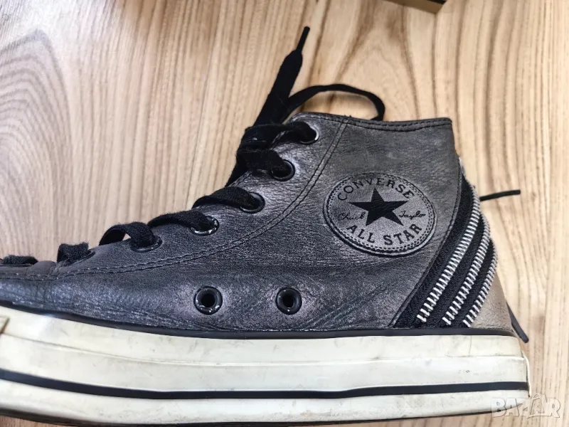 Дамски кецове CONVERSE оригинал, N'39, естествена кожа, сребристи т. сиви, много запазени → Обява 18102340