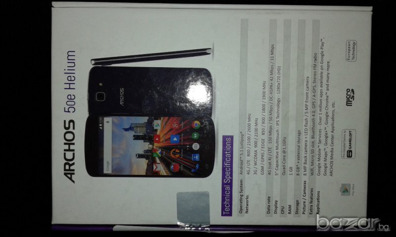 Смартфон ARCHOS 50e Helium 4G, 8GB, 8MPa, 5MPa - нов с гаранция! → Обява 18110098