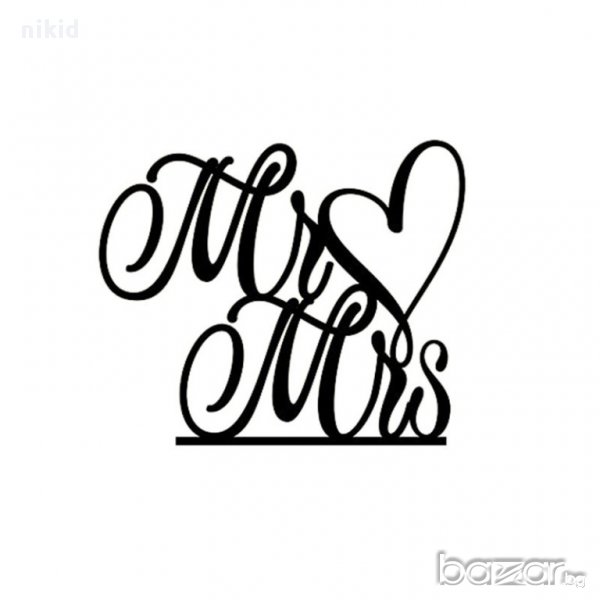 Mr ♥ Mrs сърце г-н г-жа надпис за младоженци сватба топер украса табела за торта → Обява 18112045