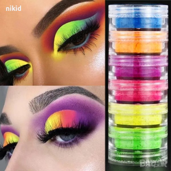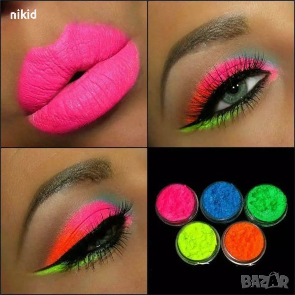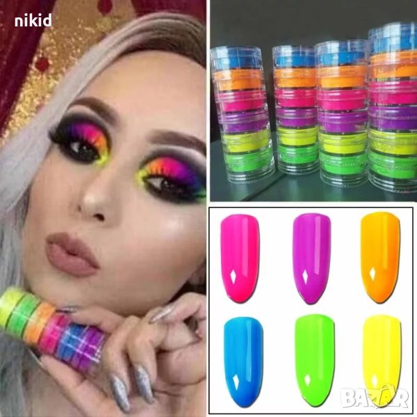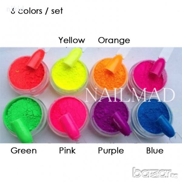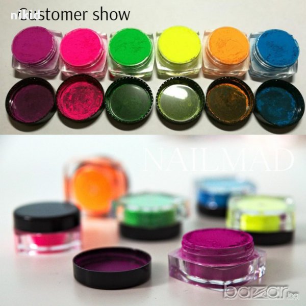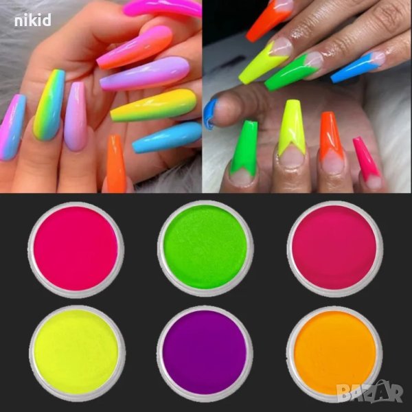 6 неонови електрик неонов неон цвят цветове пудра прах пигмент омбре за маникюр нокти за гел лак → Обява 18113104