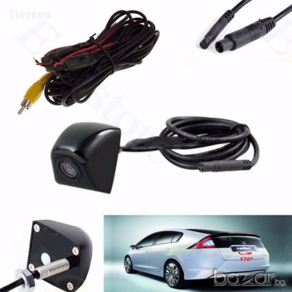 Effective pixels : PAL: 628*586 pixels/ NTSC:510*496 pixelsТехнически параметри: High Definition CCD Waterproof Car License Mount 170 Degree Rear View Backup Camera 170 degree diagonal viewing angle macro lens with mirror image IP67-compliant dustproof and waterproof High Resolution Color CCD image sensor Projecting distance scale lines onto the monitored image capable Adjustable (up/down) 170 degree camera mounting bracket Mounts easily to existing license plate screws - no new mounting holes required Product Specification: Image Sensor: Color CCD Lens Angle: 170 Degree Diagonal Sensing area: 4.08 x 3.10mm Effective Pixels: 800*480 pixels Horizontal Resolutions: 420 TV lines Minimum Illumination: 0.1 - 0.5Lux/F=1.2 Video output: RCA connector, 1.0V p-p, 75ohm Power Consumption: 60mA Package Content: Power Supply: DC12V Package Content: 1x Car Rear View Camera 1x Power cable 1x Video Cable