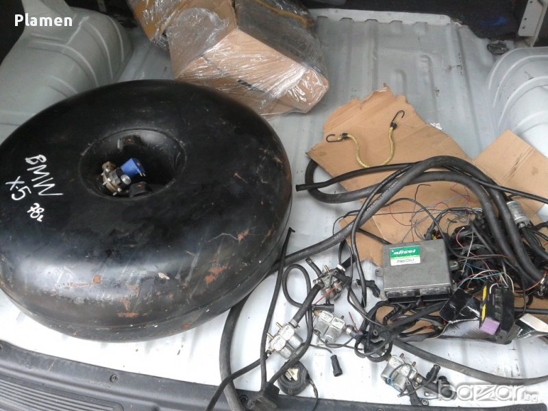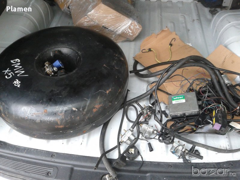 Италианска уредба газов инжекцион за автомобил заедно с кръгла бутилка с вместимост 70 л. Размери на бутилката 67/25 см.