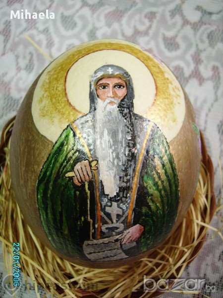 Яйцата са мое изкуство. Ореолите светят в тъмното. 1. "Утрото след Възкресение", а от другата -"Мадоната с младенеца" 2. "Св. Иван Рилски" Рисувам и по поръчка.