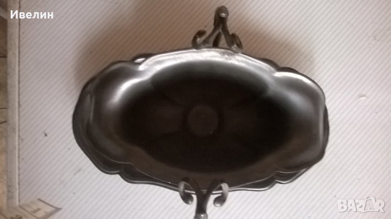 викториански съд-сосиера.материал калаено цинкова сплав.висок е 13см,размери на основата 25см/14см,налични маркировки,внос от франция.