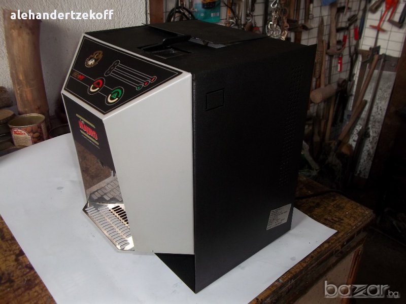 Машината е работила малко, видно от снимките и е от старата генерация тип вечни. Преминала е през пълна профилактика и е в безупречно състояние. Към нея прилагам и корпуси от оригиналните и капсули , за ориентир с кои капсули от тези , които са на пазара ще действа /всички габаритни размери на капсулата трябва да са идентични с тези на оригиналната/. Аз лично с нея съм правил перфектно кафе , като подбирам различни сортове , които слагам в празната капсула уплътнявам ги с лек натиск ,и отгоре затварям с филтърна хартия , която захващам с ластик /видно на една от снимките/ . Това е и най- евтиния начин да си направите класно кафе при това безброй пъти. Мощността и е 1300вт . Цената може да се коментира.