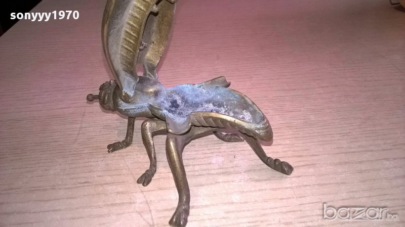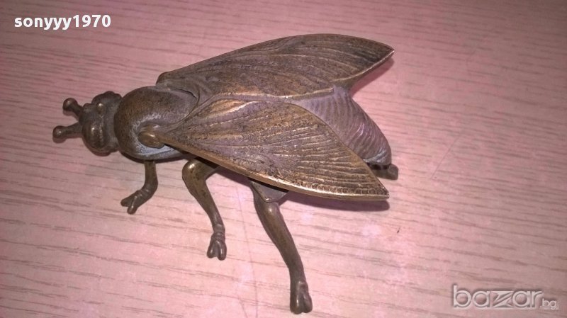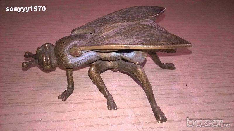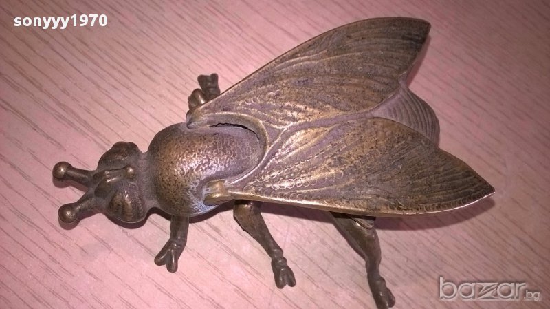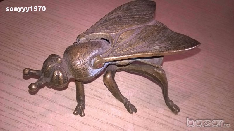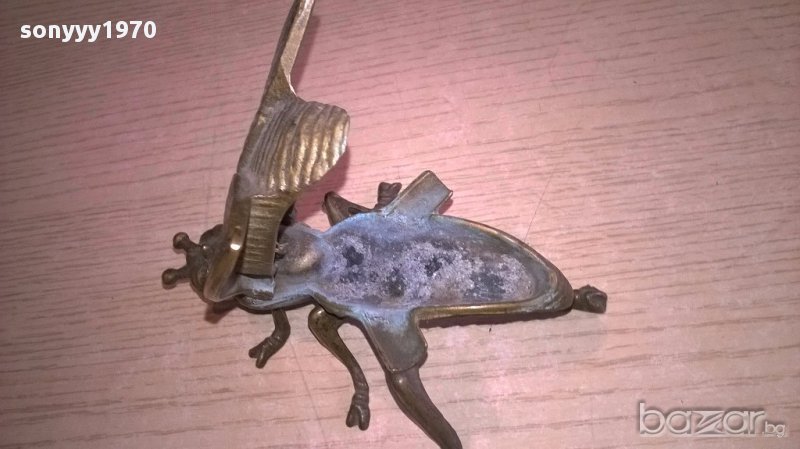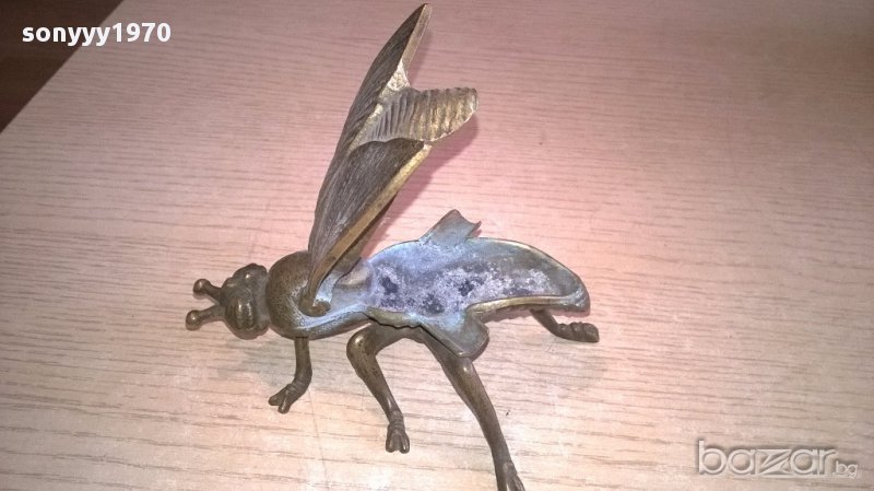 ПОРЪЧАН-Пепелник-ПЧЕЛА/МУХА-АНТИК-масивен-мед/месинг-12х8х5см