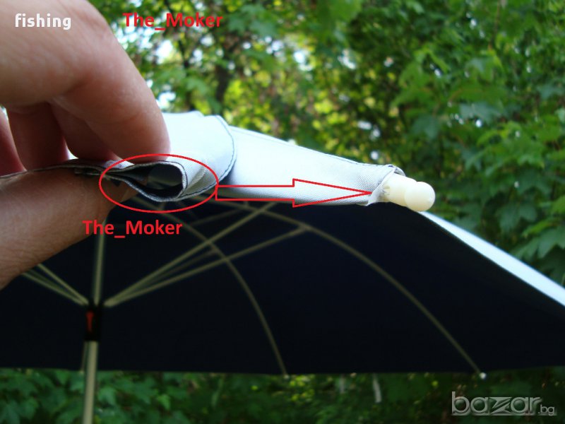 Иновация при чадърите имате възможност да отворите част от чадъра за да НЕ ви пречи при замятане и улов на риба може да бъде видяно на една от снимките .