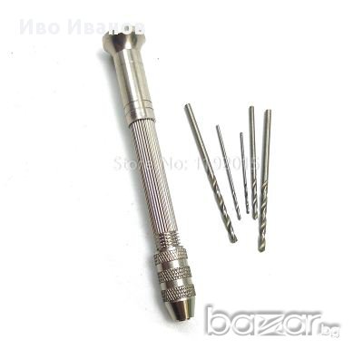 Мини-дрелката за свредла до 3 мм има за цел да облекчи пробиването на миниатюрни отвори при сглобяване на модели , макети и др. Тя от три части, навиващи се една. Дрелката е с метален