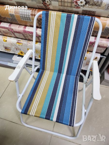 Страхотен стол за къмпинг.Сгъва се и се пренася лесно.В свежи цветове.