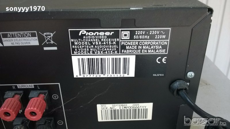 pioneer vsx-415-k-audio/video-multi-channel receiver-внос швеицария...сериозна машинка без ремонти и забележки...нов внос...всичко работи...оптичен цифров вход...няма точица по уреда,като нов-от днес 28.02.22г пращаме със спиди или еконт с преглед и тест след превод на капаро за куриерската услуга поради зачестили некоректни потребители-поръчки само в тук в саита! по телефона и със смс не! краини цени! бартери не правиме! всеки ден нови неща-още над 18000 обяви тук