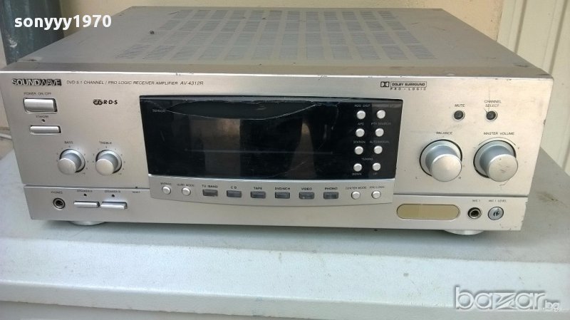 Soundwave av-4312r receiver 5.1 channel-внос швеицария...голям и много тежък...нов внос и без ремонти...свири много здраво а тунера лови всичко...спукано е стъклото и за това е само толкова-от днес 28.02.22г пращаме със спиди или еконт с преглед и тест след превод на капаро за куриерската услуга поради зачестили некоректни потребители-поръчки само в тук в саита! по телефона и със смс не! краини цени! бартери не правиме! всеки ден нови неща-още над 18000 обяви тук