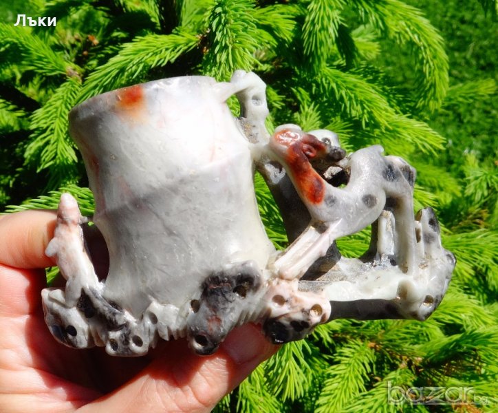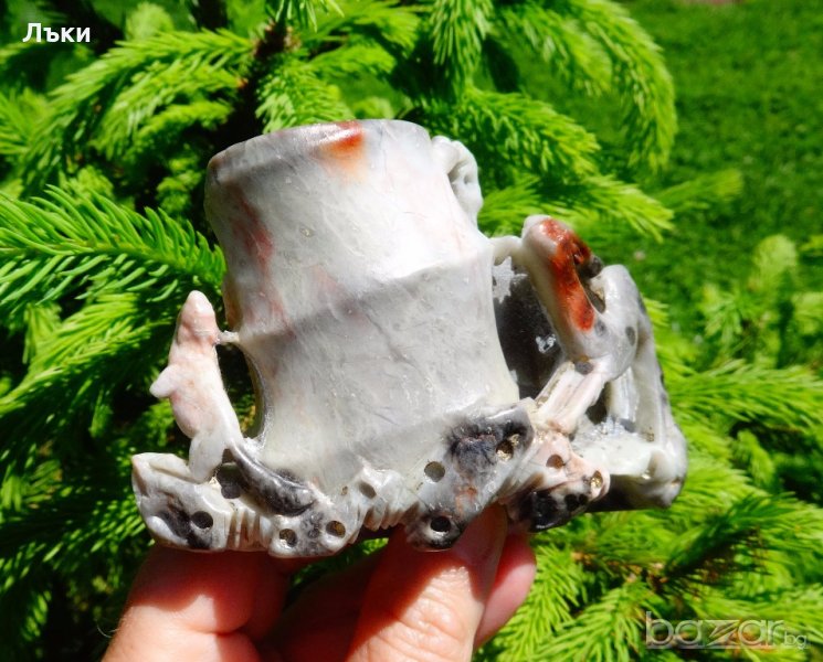Старинна мастилница,поставка за писалка,поставка за химикал,майсторска ръчна изработка от истинска кост на нарвал /кит с рог/,на най-малко 150 години.Изделията от кост на нарвал са по-ценени от любители и колекционери,защото се намират много по-трудно от слоновата кост.Размери 7.5 х 12 х 3.5 см.Тегло 209 гр.