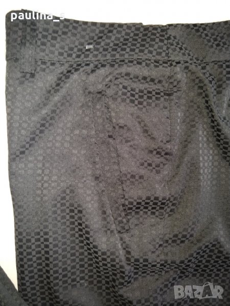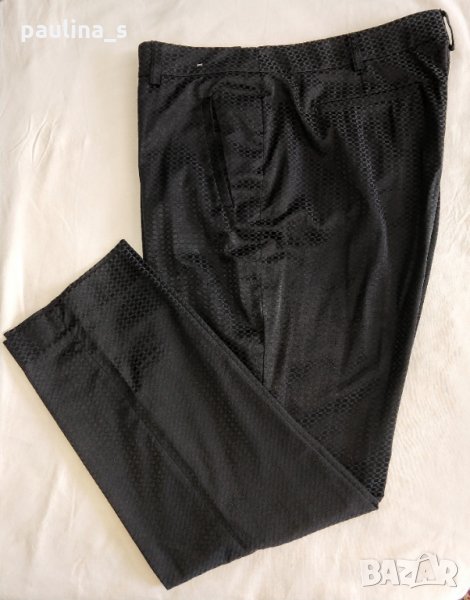 Поради новите правила за заплащане на обновяванията на обявите, моля разгледайте и последните страници на профила ми, обявите са активни и евтини. Дизайнерски официален панталон, покрива дрескода за офис или повод. Много шик и елегантен аутлук със сатениращо-релефен отблясък, стои релефно и придава дискретен лукс. Материята е фин памук, полиестер и еластан, умерено еластична. Моделът е изчистен с косо разположени предни джобове, елегантно завършващи само на филетка, не променящи формата на ханша. Отзад филетките са украсителни. Дрехата е много луксозна и непретенциозна, съобразено с размера и предназначението. Изработката и качеството са гарантирани от елитния бранд. Нов, не е носен.