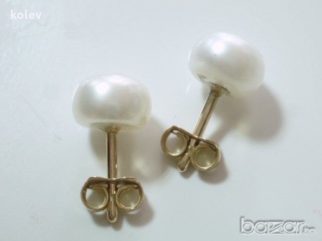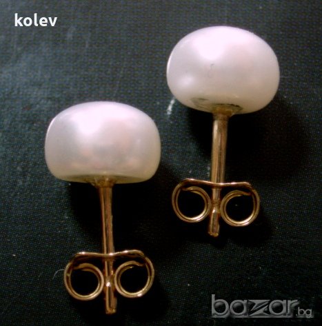 Златни обеци на щифт с бяла морска перла 8-8.5 мм 2.08 грама