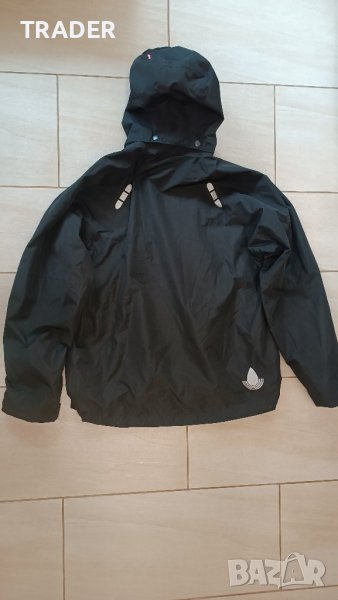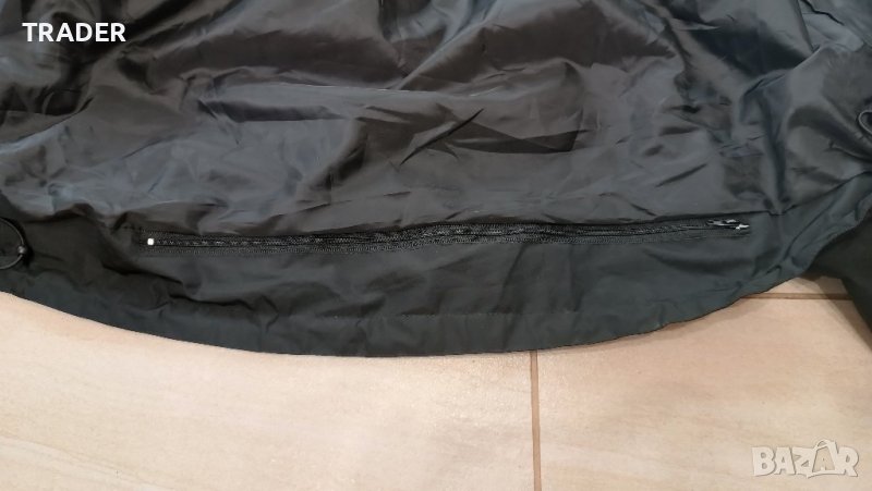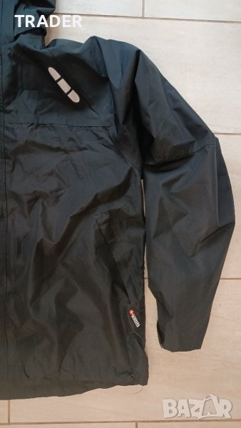 Три външни джоба, един вътрешен, регулируема и сваляема качулка, обтегачи в качулката и в долната част на якето, велкро лепенки на ръкавите, втори ластичен ръкав, против влизане на вода и вятър, капаци на зиповете. Рефлекторни елементи. Джоб в долната част за компактно сгъване на якето. Материята е водонепромокаема!!! Без забележки, ново!!!