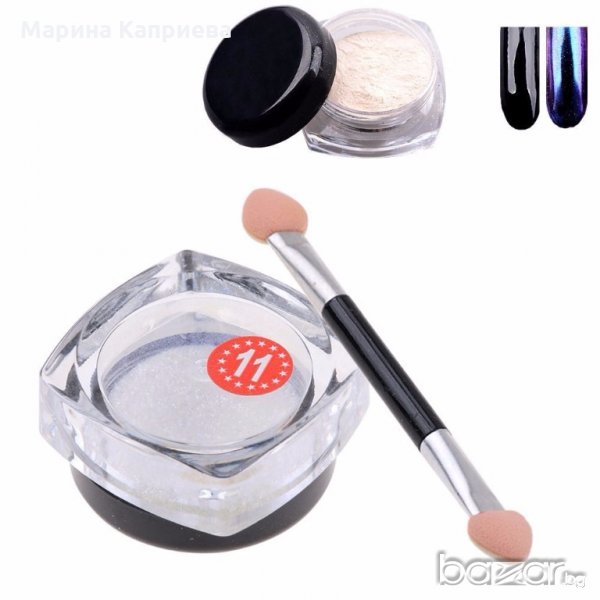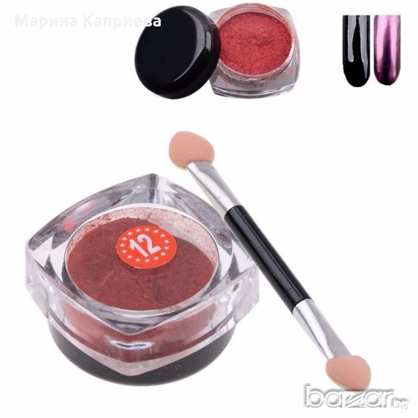 Следвате стандартните процедури за нанасянето на гел лак - основа, черен гел лак или гел. Избършете добре лепкавия слой или нанесете топ лак без лепкав слой, след това с наличният в опаковката апликатор или с пръст втрийте пигмента докато покрие добре цялата плочка на нокътя. Почистете ако има попаднал пигмент по кожичките и нанесете един или два слоя топ лак, препоръчително без лепкав слой. Готово имате метално огледало на маникюра!