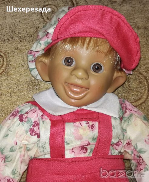 Сладка испанска характерна кукла с големи ушички -оригинална на Berjuan /маркирана е на врата/. Облечена в гащеризон, блузка и шапка. Височина 38 см.