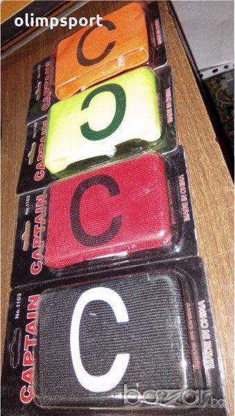 "Капитанска лента, еластична. Предназначение: за идентифициране на капитана в различни отборни спортове. Прикрепването е бързо и лесно посредством велкро лепенка. Цвят асорти - различни ярки цветове. Материал - полиестер, еластан; Широчина на лентата - 7см; Дължина -29 см;"