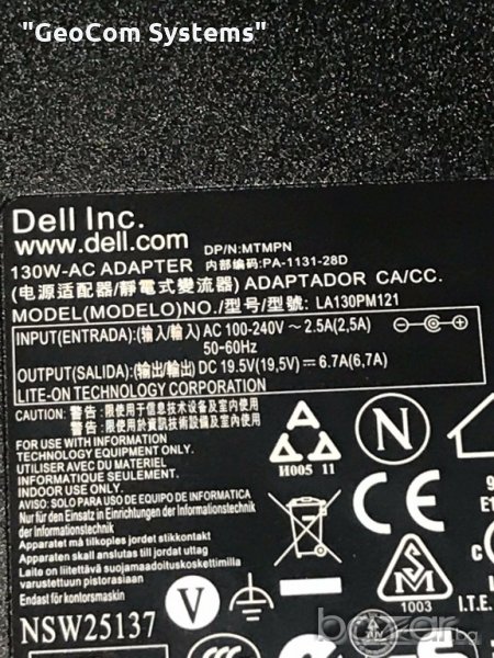 DELL 130W оригинално зарядно (19,5V,6.7A,130W)