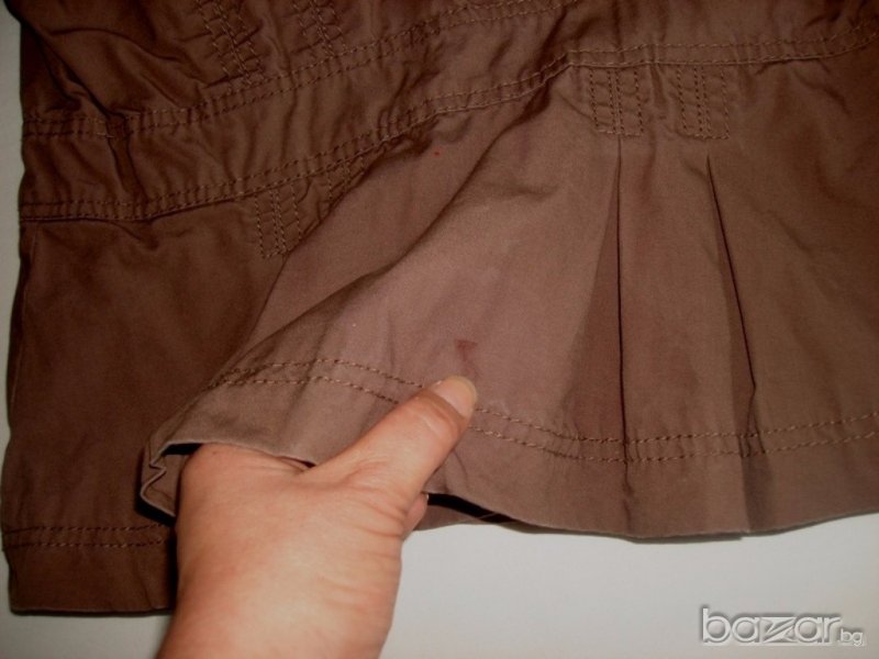 в средата на подгъва отзад,има малко зацапано,не съм третирала с препарат,може да излезе,а и не личи толкова,