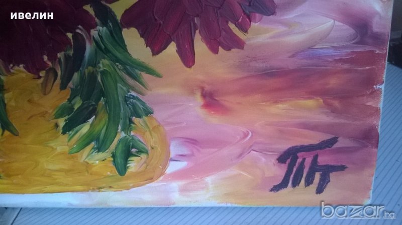 картина-цветя.масло на платно ,подписана,с подрамка с размери 65см/50см.