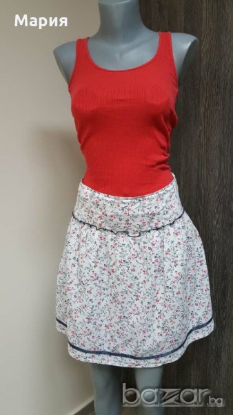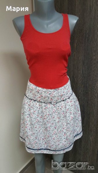 Пола на Seven Hill, акцент цветя, размер S, памучна материя, страничен цип, без забележки. Червеният потник е подарък към полата.