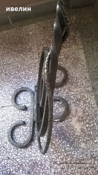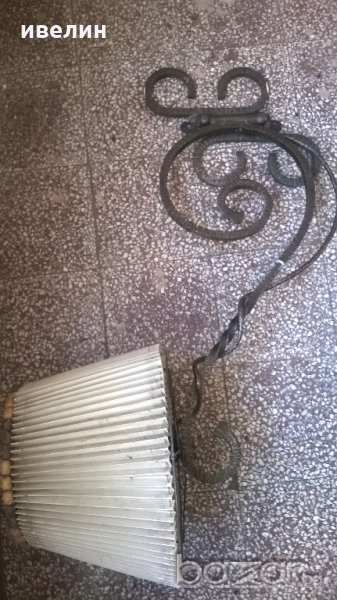 стар аплик за стена-уникат.корпус от ковано желязо.размери на основата 41см/30см,дължина на рамото 85см,тежи 8,6кг.,върти се на 180 градуса.ръчна изработка.подходящ за външно осветление на къща,механа.