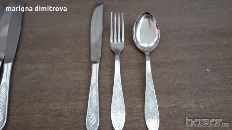 руски прибори за хранене 6 бр ножове 6 бр вилици 18см 6бр лъжици 18см 6 бр лъжички 14см комплект от 24бр-95лв. 48бр-190лв Отделно лъжици 18см 6бр-24лв вилици 18см 6бр-24лв