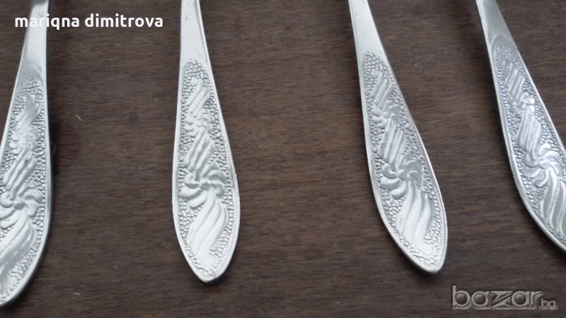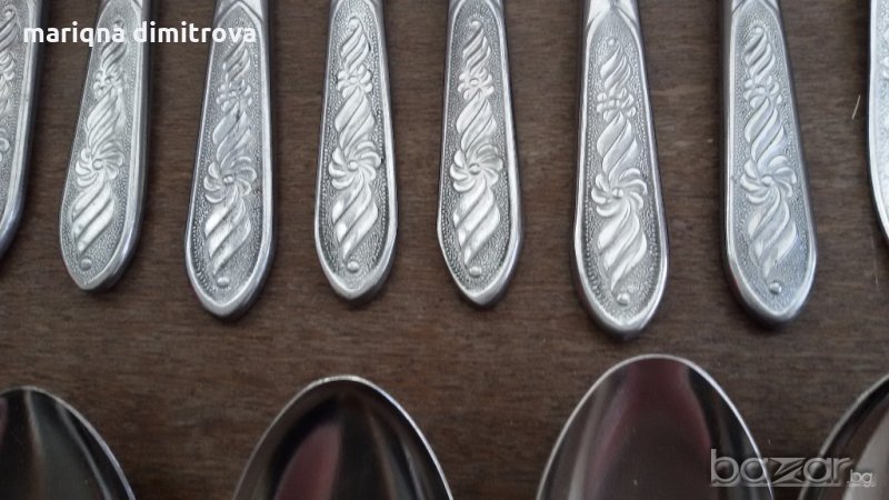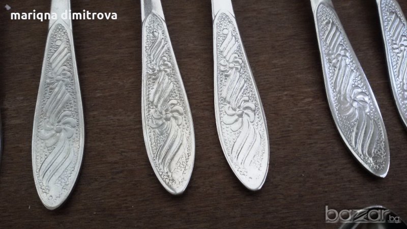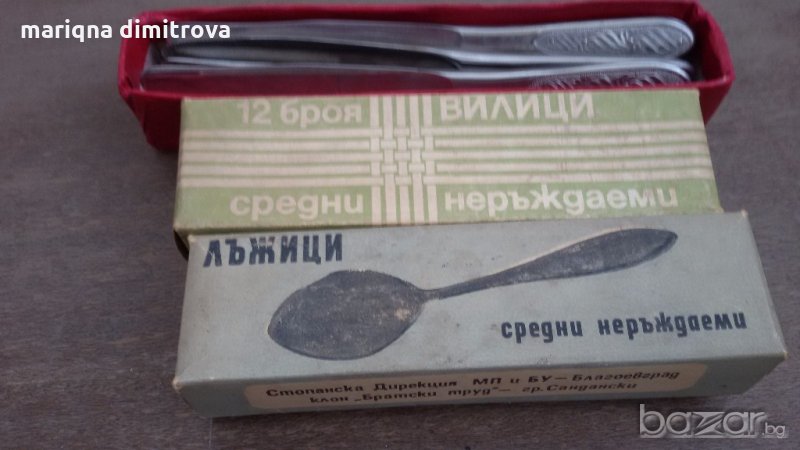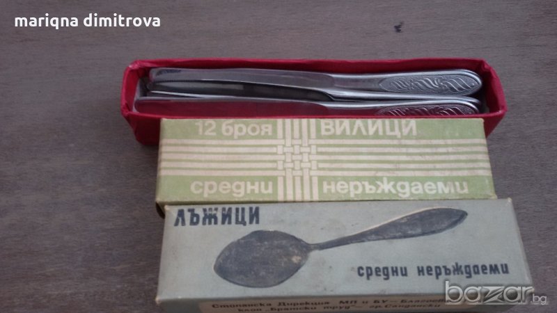 Има и вилици и лъжици от 19см дължина 6бр-20лв всичко е неупотребявано неръждаеми маркирани комплект сет лот ретро арт декор винтидж колекция стари антикварни предмети обзавеждане за дома и семейството съветски ссср еконт налични два комплекта