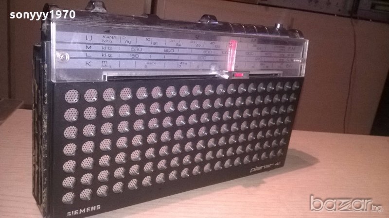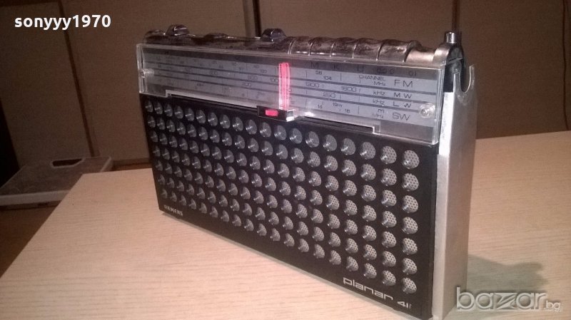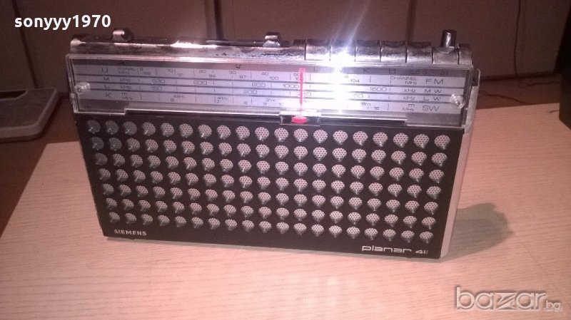 siemens planar 411-germany-31х18х6см-внос швеицария - немски ретро приемник...работи идеално под плъзганията отзад има кабел за 220в и място за батерии...има и букса петица...има здрава чупеща антена-липсва дръжката и лява декоративна лаисна-от днес 28.02.22г пращаме със спиди или еконт с преглед и тест след превод на капаро за куриерската услуга поради зачестили некоректни потребители-поръчки само тук в саита! по телефона и със смс не! краини цени! бартери не правиме! всеки ден нови неща-още 2-3 наши обяви тук
