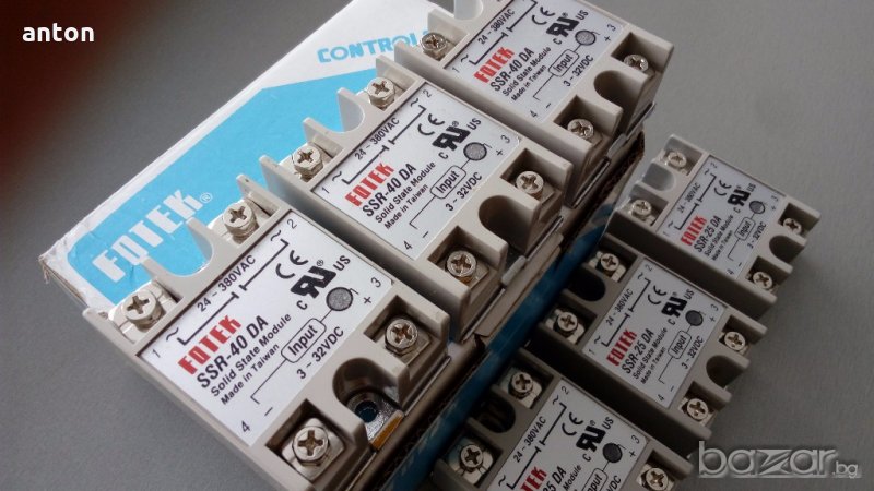 Полупроводникови релета за перални, нагреватели, ел. електродвигатели, бойлери , печки и други силнотокови електроуреди. Заместват по-бавните механични релета. OMRON / FOTEK и др.
