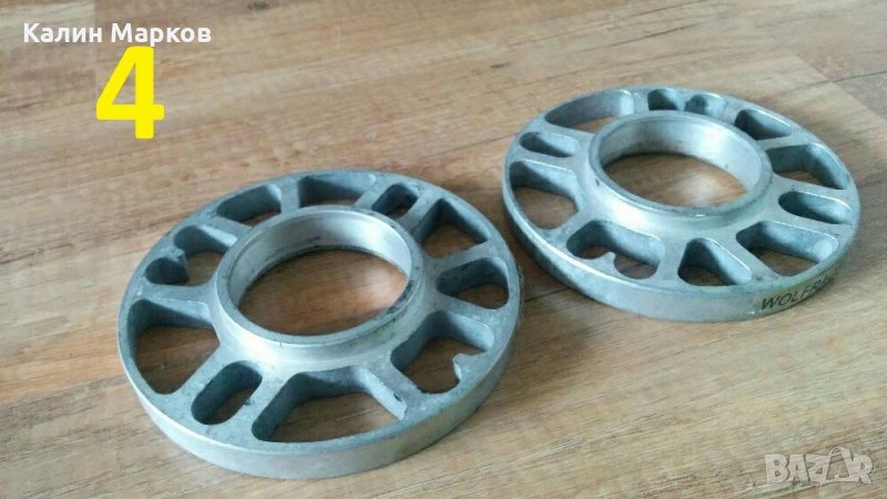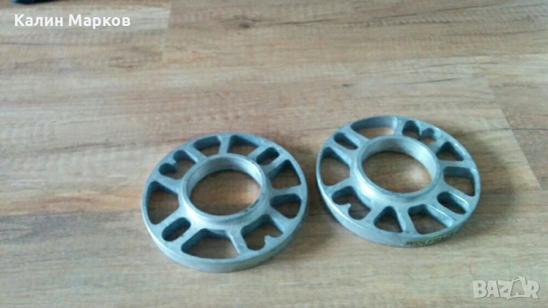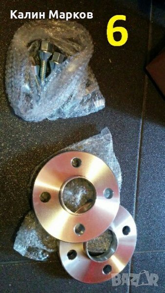 5х100 централен отвор 56.1 мм, дебелина 15 мм - шпилки + 10 гайки. Монтаж фланеца към джантата и след това джантата за фланеца, за Субару, Последната снимка. Цената за 2 броя фланци = 65 евро.