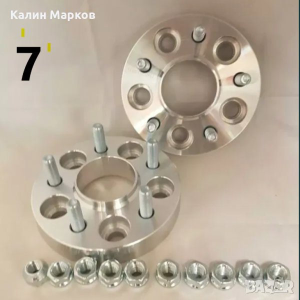 5х100 централен отвор 56.1 мм, дебелина 25 мм - шпилки + 10 гайки. Монтаж фланеца към джантата и след това джантата за фланеца, за Субару, последната снимка. Цената за 2 броя фланци = 70 евро.