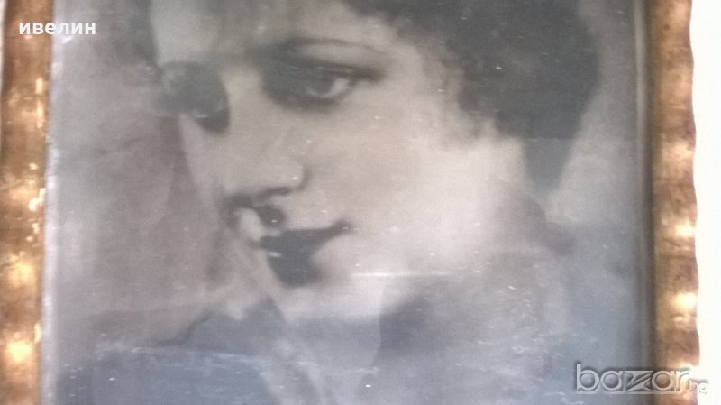 Стара снимка на немската кинозвезда Евелина Холт,спрягана за любовница на Принц Кирил.Рамка със стъкло с размери 24см17см.Снимката е скъсана в горния ляв ъгъл-видно от снимките.